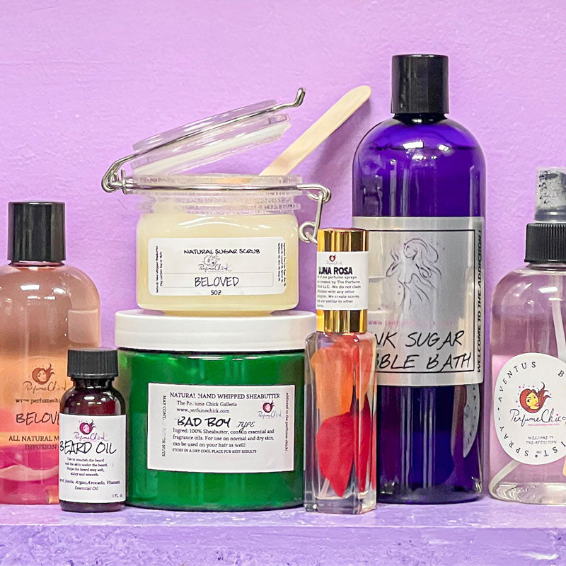 Your one-stop shop for natural shea butter and essential oil products for your skin, hair and fragrance needs. We don't claim any affiliation with the original designers. All scents on this page are the expressions of The Perfume Chick Galleria.